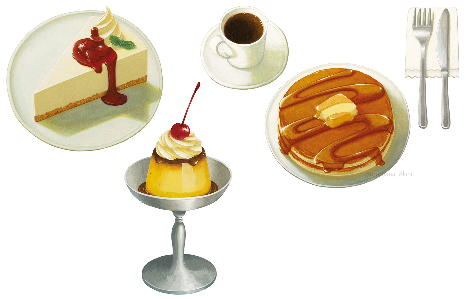 喫茶店メニューのストックイラスト(不透明水彩/Photoshop)